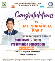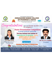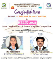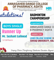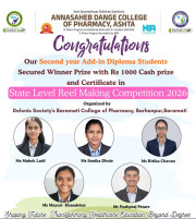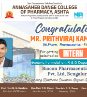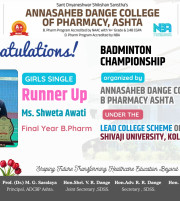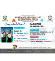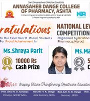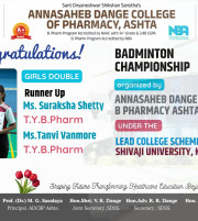 The Annasaheb Dange College of B Pharmacy, Ashta is one of the foremost pharmacy Institute in the Western Maharashtra, distinguished by its commitment to create competent pharmacy professionals who can efficiently contribute for the healthcare system of society and to the pharmacy profession. In order to provide higher education to the students of rural areas, ADCBP is established in 2016 by the Hon. Ex. Minister, Dr. Annasaheb Dange. Currently institute offers D.Pharmacy (60 Intake), B.Pharmacy (100 Intake) and M.Pharmacy in Pharmaceutics (15 Intake) ...