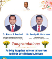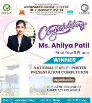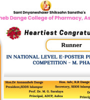 The Annasaheb Dange College of B Pharmacy, Ashta is one of the foremost pharmacy Institute in the Western Maharashtra, distinguished by its commitment to create competent pharmacy professionals who can efficiently contribute for the healthcare system of society and to the pharmacy profession. In order to provide higher education to the students of rural areas, ADCBP is established in 2016 by the Hon. Ex. Minister, Dr. Annasaheb Dange. Currently institute offers D.Pharmacy (60 Intake), B.Pharmacy (100 Intake) and M.Pharmacy in Pharmaceutics (15 Intake) ...