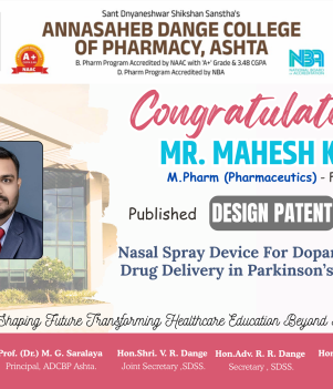 Hearily Congratulations to Mr. Mahesh Kore ( Final Year M Pharm - Pharmaceutics) published design patent entitled Nasal Spray Device For Dopaminergic ...