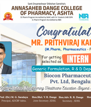 We would like to extend our heartfelt congratulations to Ms. Shreya Patil, a Final Year B. Pharm student at Annasaheb Dange College of B. Pharmac...
